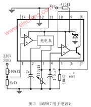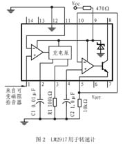 LM2917為單片集成頻率-電壓轉換器,芯片中包含了一個高增益的運算放大器/比較器,當輸入頻率達到或超過某一給定值時,輸出可用于驅動